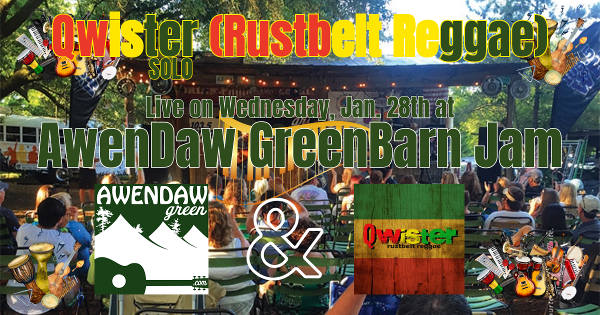 Qwister Returns to Awendaw Green Barn Jam / Wednesday, January 28th Qwister Solo January 28, 2026 Awendaw, SC (Barn Jam Music Series) Free facebook Details Time : 6-10pm Venue : Awendaw Green Address : 4853 N Highway 17 State : SC Zip : 29429 Contact Email : ryangmelquist@gmail.com Contact Website : http://www.awendawgreen.com
