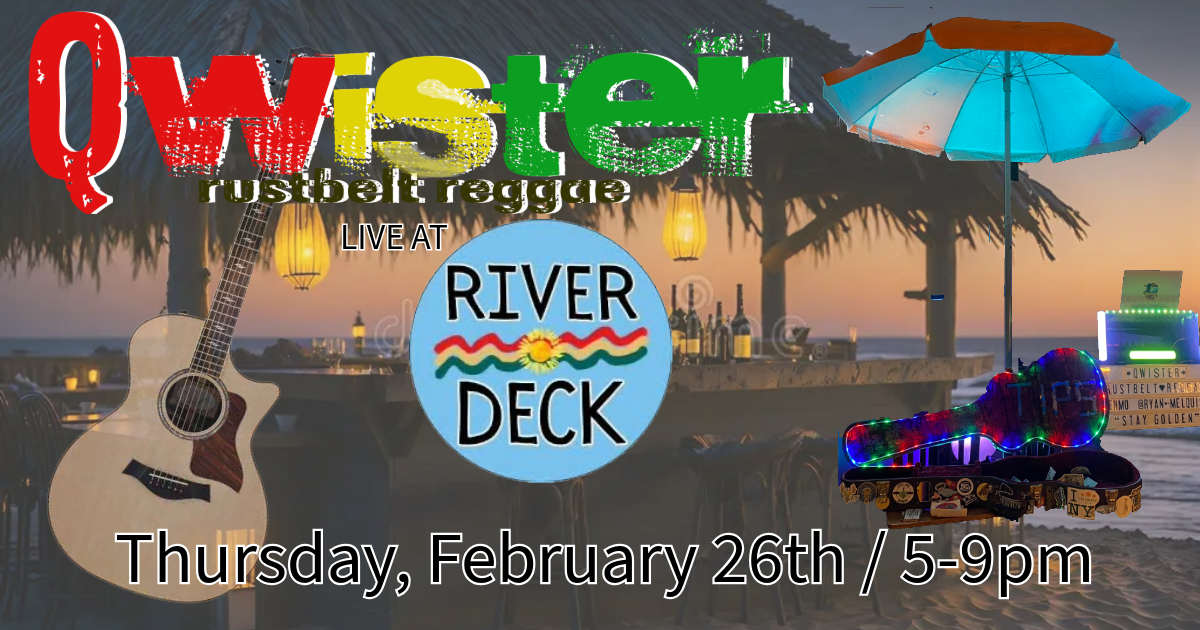 Qwister Live at River Deck Tiki Bar & Restaurant / Thursday, February 26th / 5-9pm Qwister Solo February 26, 2026 New Smyrna Beach, FL (Thursday Evening) Free facebook Details Time : 5-9pm Venue : River Deck Tiki Bar & Restaurant Address : 107 N Riverside Dr. State : FL Zip : 32168 Phone : +13869574198 Contact Email : ryangmelquist@gmail.com Contact Website : https://riverdecknsb.com/
