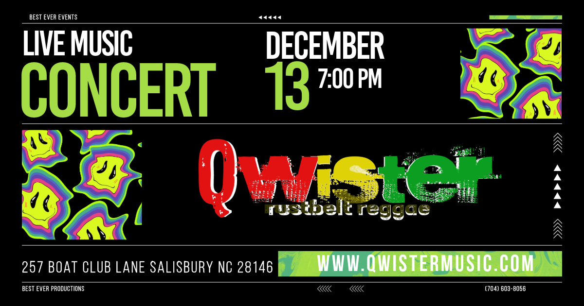 Qwister Solo Live @ Water’s Edge Dock & Grill / Saturday, December 13th Qwister Solo December 13, 2025 Salisbury, NC (Saturday Night) facebook Details Time : 7-10pm Venue : Water's Edge Dock & Grill Address : 257 Boat Club Ln. State : NC Zip : 28146 Phone : +17046038056 Contact Email : ryangmelquist@gmail.com Contact Website : http://www.watersedgehighrock.com/